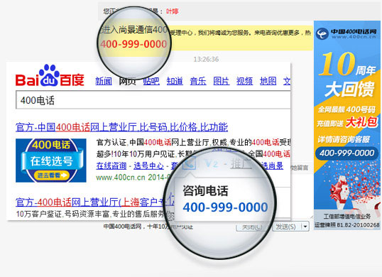 400平臺拓展了一號多線、企業彩鈴、IVR語音導航、短信通知、來電錄音、語音信箱、工號播報、來電分析、分配、實時清單等20多項呼叫中心功能;無需增加硬件、軟件投入,無需人力維護,開通智能400企業熱線,即可打造大型企業呼叫中心。