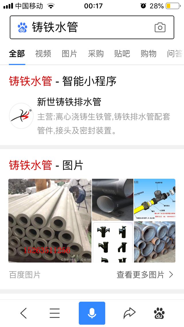 百度小程序:新世鑄鐵排水管、新世柔性鑄鐵管廠家、新世柔性鑄鐵排水管廠家、新世環氧鑄鐵管廠家、新世鑄鐵管件廠家、新世環氧排水管廠家、新世環氧樹脂鑄鐵管廠家、新世鑄鐵排水管件廠家